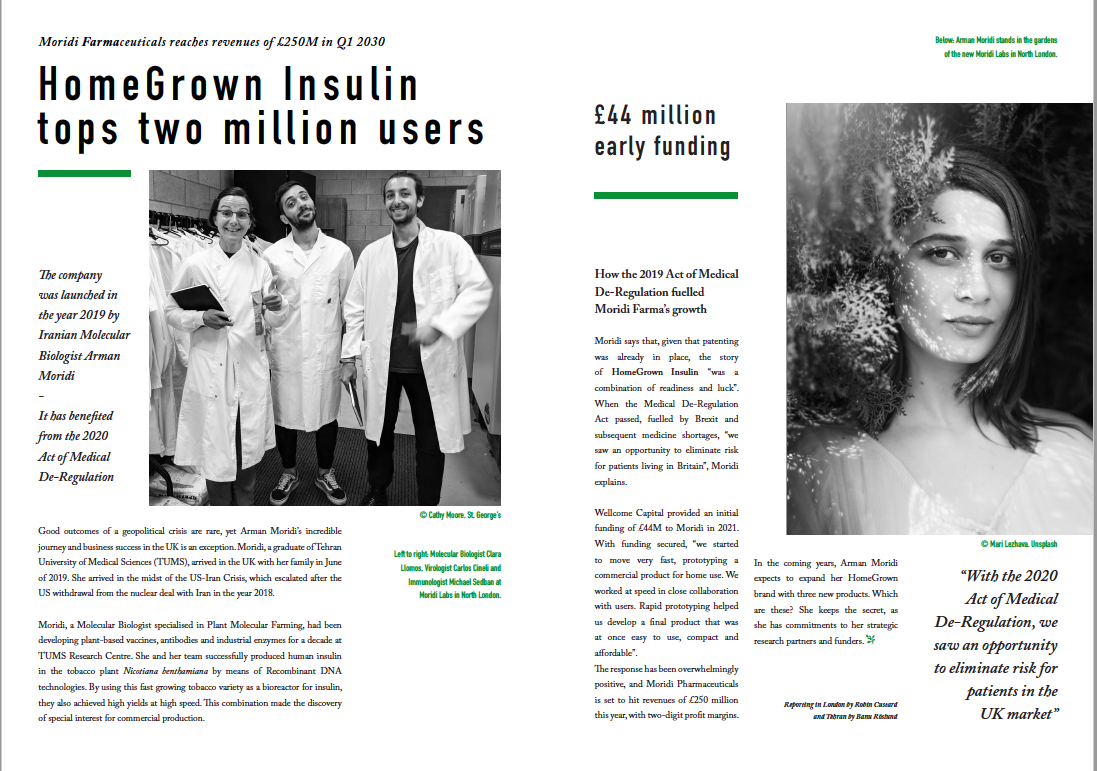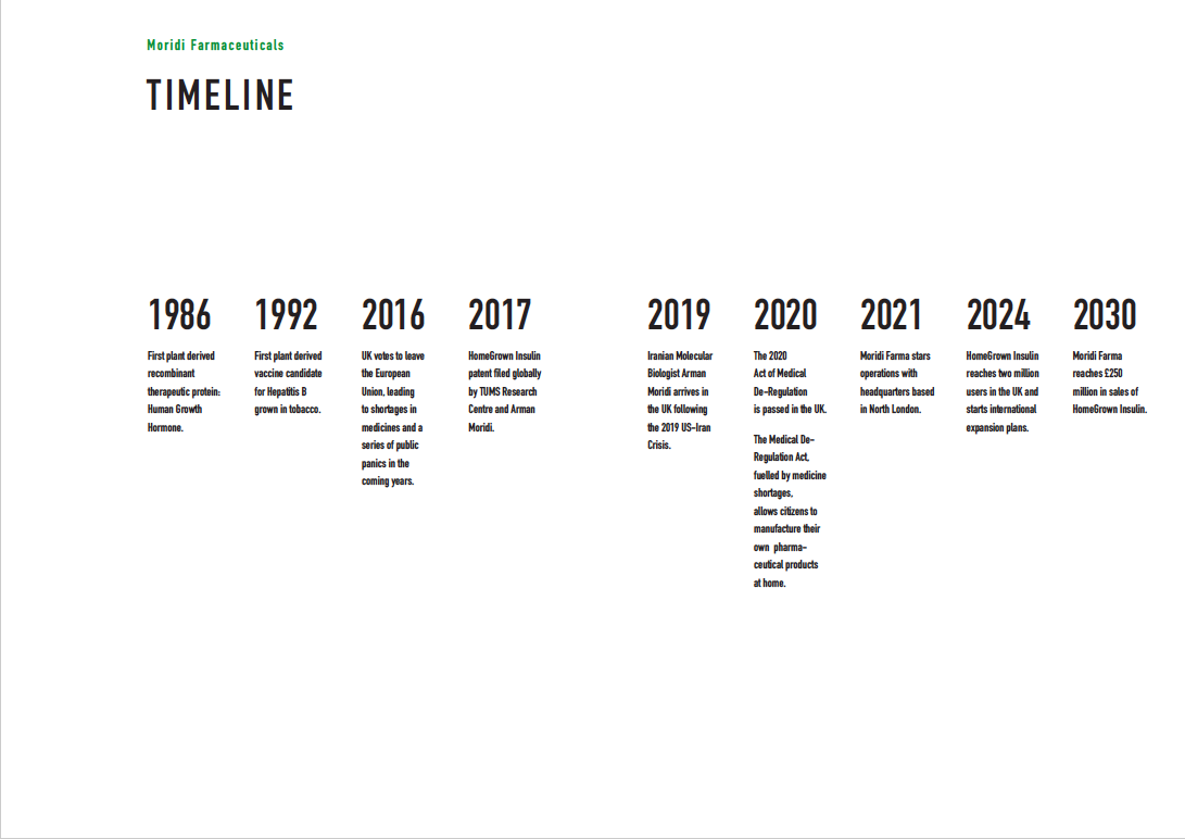 It is staged in a speculative near-future fiction, where, Brexit agreement had forced the UK government, facing medicine shortages (due to the lack of import capabilities) to open up the pharmaceutical markets to new ways of production.